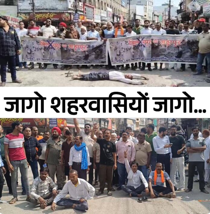 Public Protest : बिलासपुर। स्मार्ट सिटी यह शब्द सुनने और कही लिखा हुआ देखने में बहुत अच्छा लगता है, लेकिन बिलासपुर शहर में स्मार्ट सिटी के नाम पर करोड़ों रुपये खर्च कर सिर्फ बोर्ड ही चमक रहे हैं। पर हालात देखकर लगता है जैसे शहर को धूल सिटी बना दिया गया हो। सोमवार को जूना बिलासपुर में जर्जर सड़क होने पर व्यापारी सड़क पर आ गए। महीनों से जर्जर पड़ी सड़कों और प्रशासन की बेरुखी से परेशान व्यापारियों और नागरिकों ने चक्काजाम कर नेताओं और अफसरों के खिलाफ मोर्चा खोल दिया।