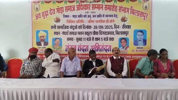 Social unity : बिलासपुर। बिलासपुर जिले में रविवार को चिंगराजपारा स्थित गंधर्व समाज भवन में जय बुढ़ादेव गांड़ा समाज अधिकार एवं सम्मान समारोह संभाग स्तरीय महत्वपूर्ण बैठक संभाग स्तरीय महत्वपूर्ण बैठक आयोजित की गई। इस बैठक में मुख्य अतिथि के रूप में प्रभाकर ग्वाल उपस्थित रहे, जबकि विशिष्ट अतिथि के तौर पर समाज के वरिष्ठ नागरिक गणों ने अपनी गरिमामयी उपस्थिति दर्ज कराई।